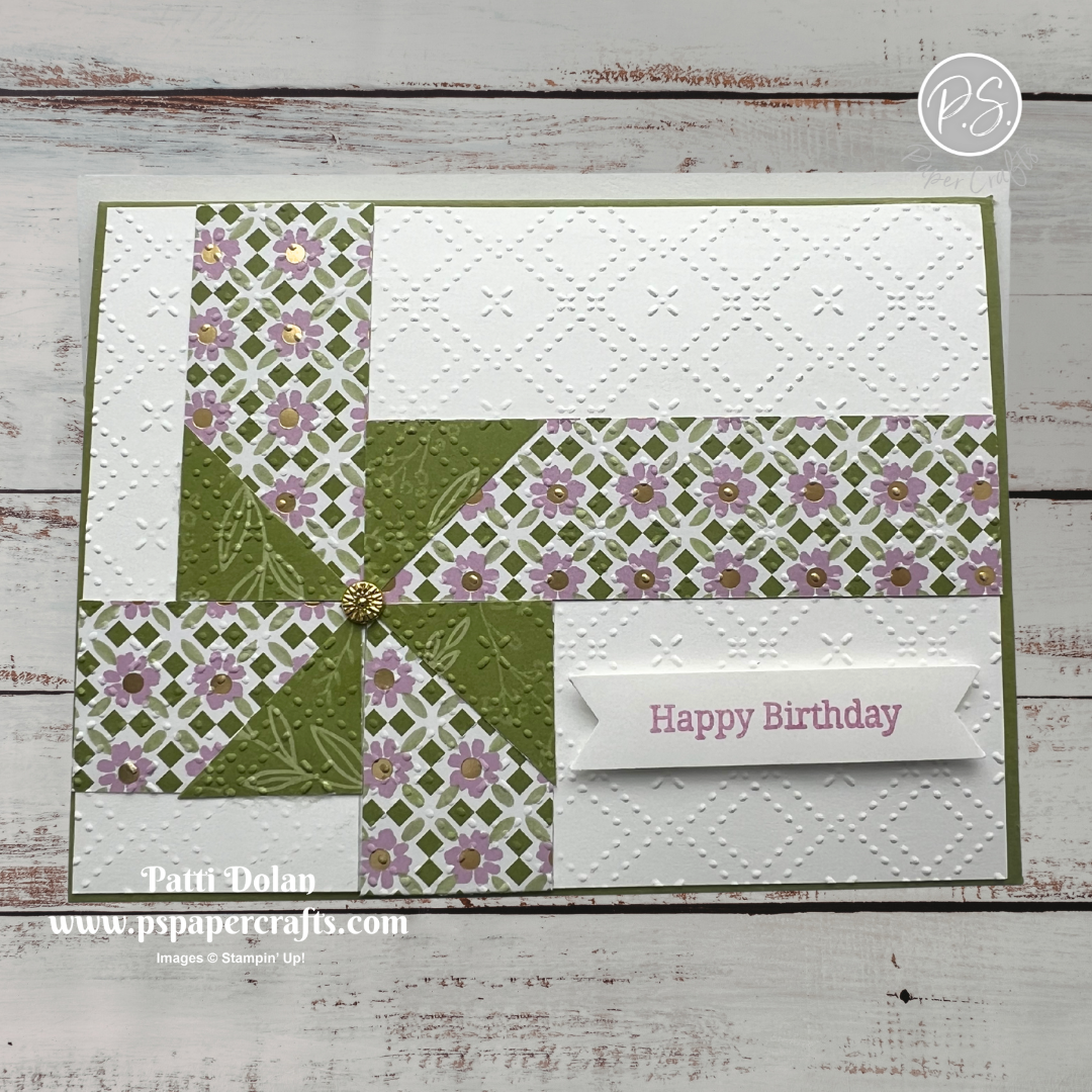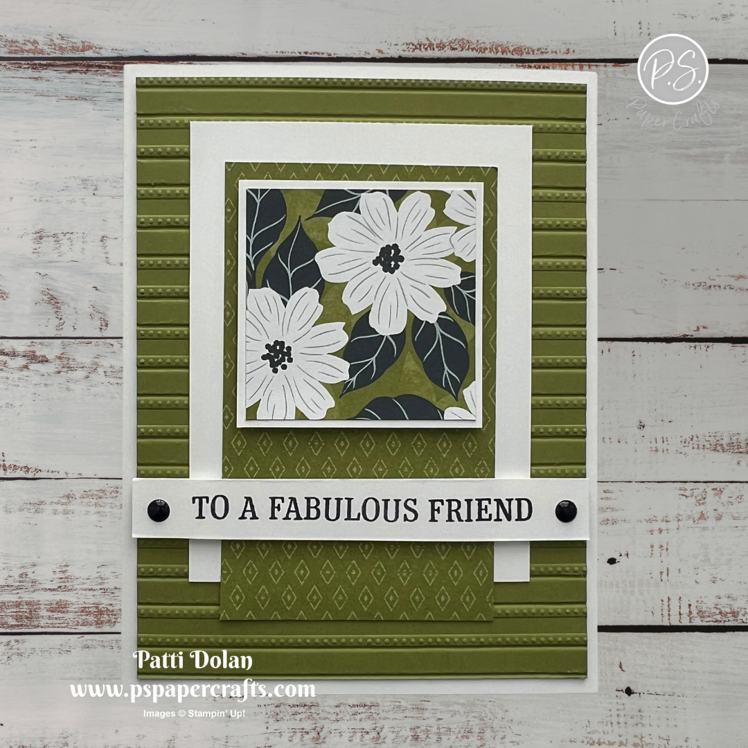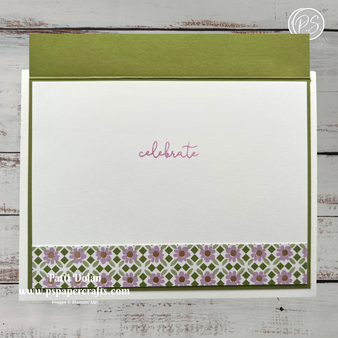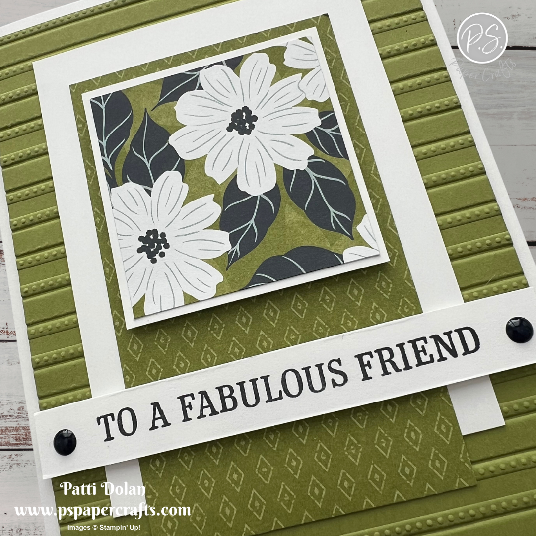 Mossy Meadow Strip - 1-1/4 x 5-1/4, emboss using the Forever Plaid 3D Embossing Folder, adhere to the card.