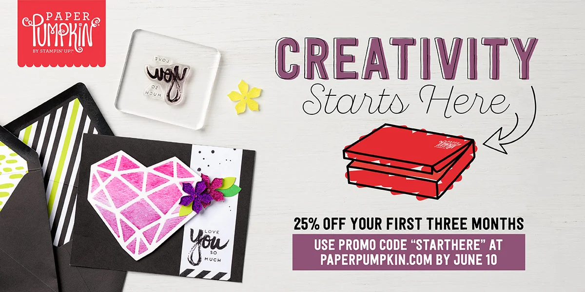 Want to craft but feel like you don’t have the right supplies? Sign up for Paper Pumpkin! First-time customers get an introductory 25% off for June, July, and August if you sign up by June 10, 2017.