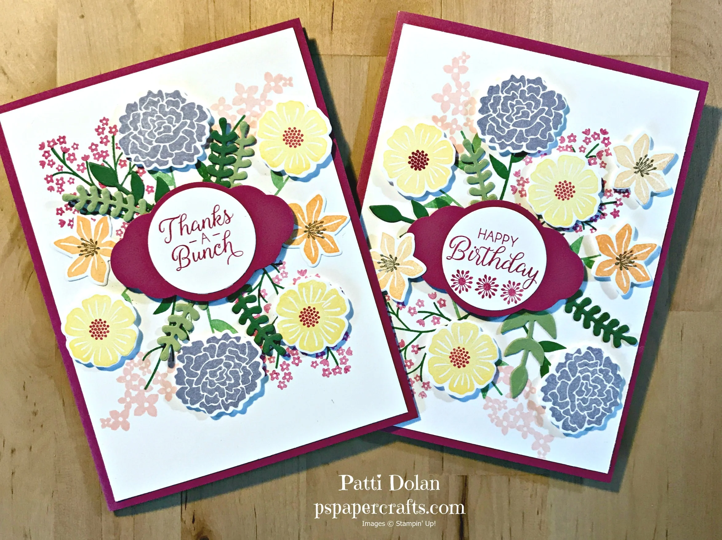 Today's cards feature the Beautiful Bouquet Bundle. I made a birthday card for my Mom's 86th birthday. She loves flowers. I made the card in the video as a Thank You card just to change it up a little.