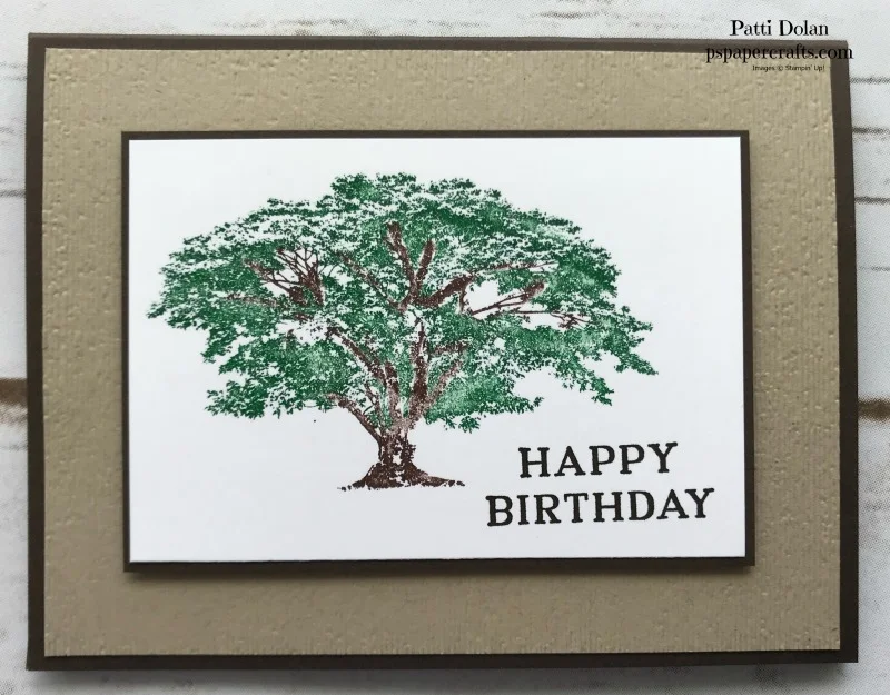 It seems like a natural fit to use the Subtle Embossing Folder with the Rooted In Nature Stamp Set to make a great masculine card. Can you see all the texture between the embossing folder and the tree that has multiple colors? I colored the tree stamp with Stampin’ Write Markers and then stamped so you can see the brown branches and green leaves.