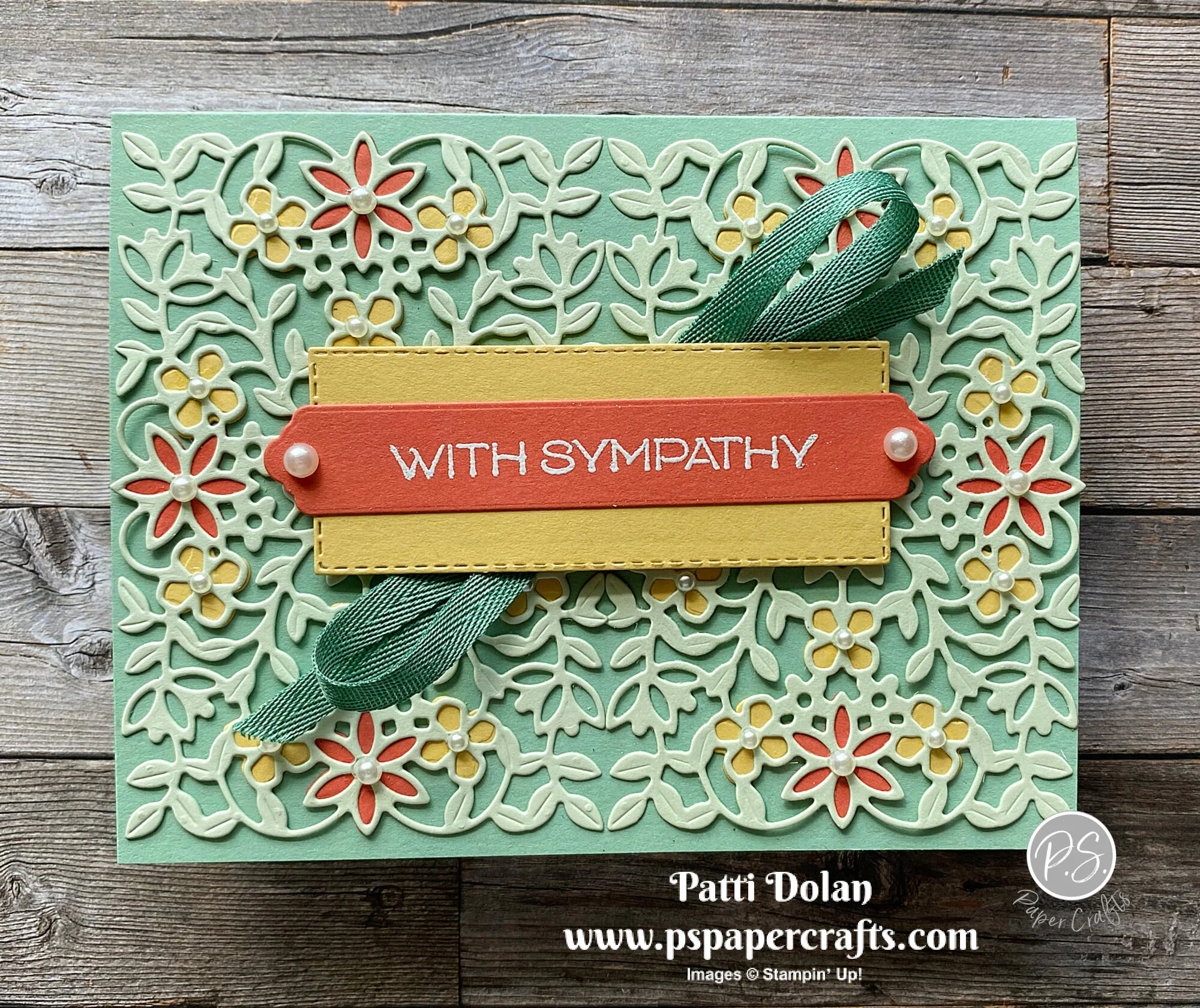 So Saffron Cardstock - cut about 20 small flowers using the Flowering Vine Dies. You may need less depending on the size of the sentiment label you use.