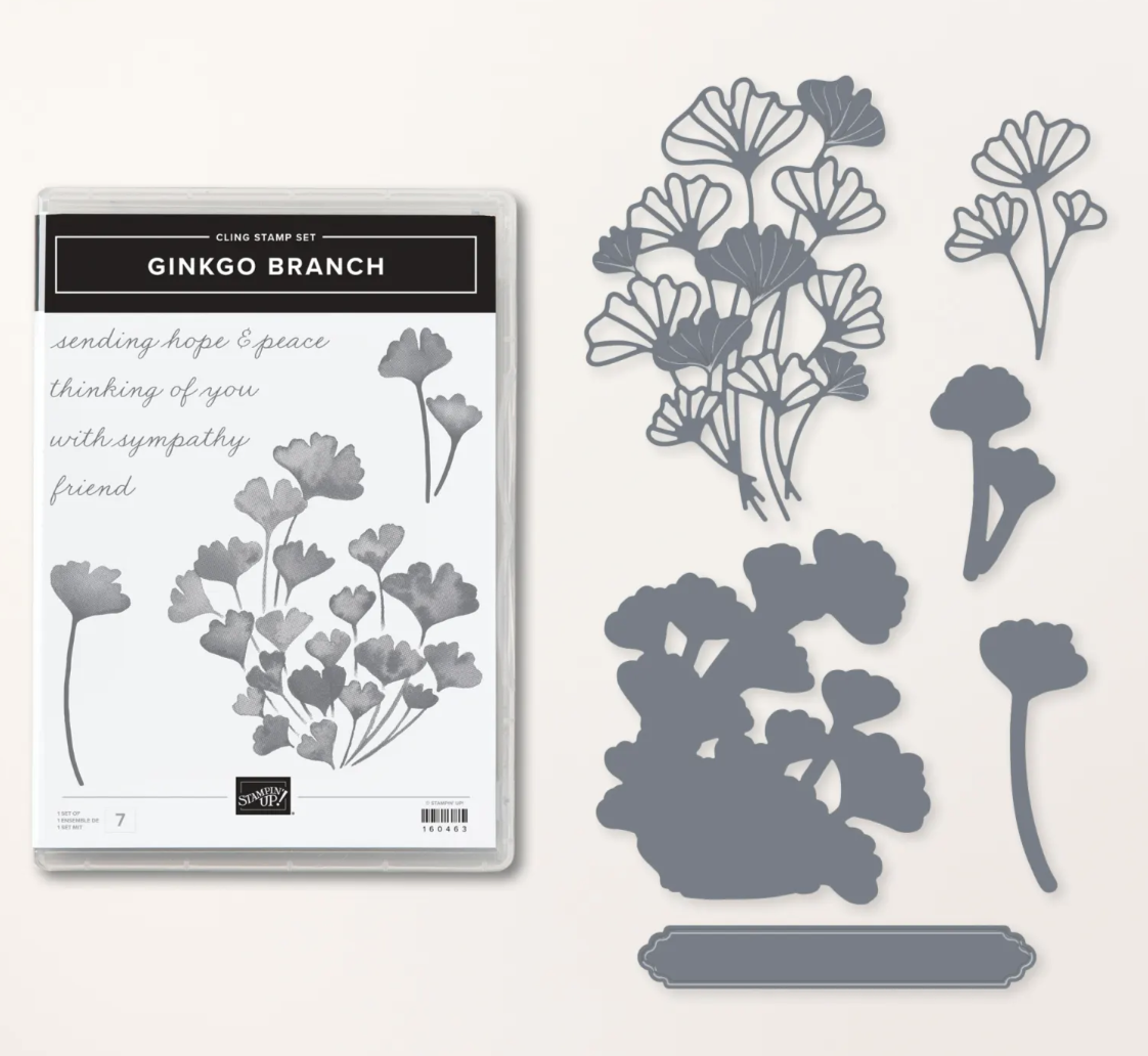 I love the sweet sentiments Ginkgo Branch Stamp Set The coordinating dies will cut your stamped images and there’s a great label die for the sentiments. There are a couple of stand-alone dies that are just beautiful.