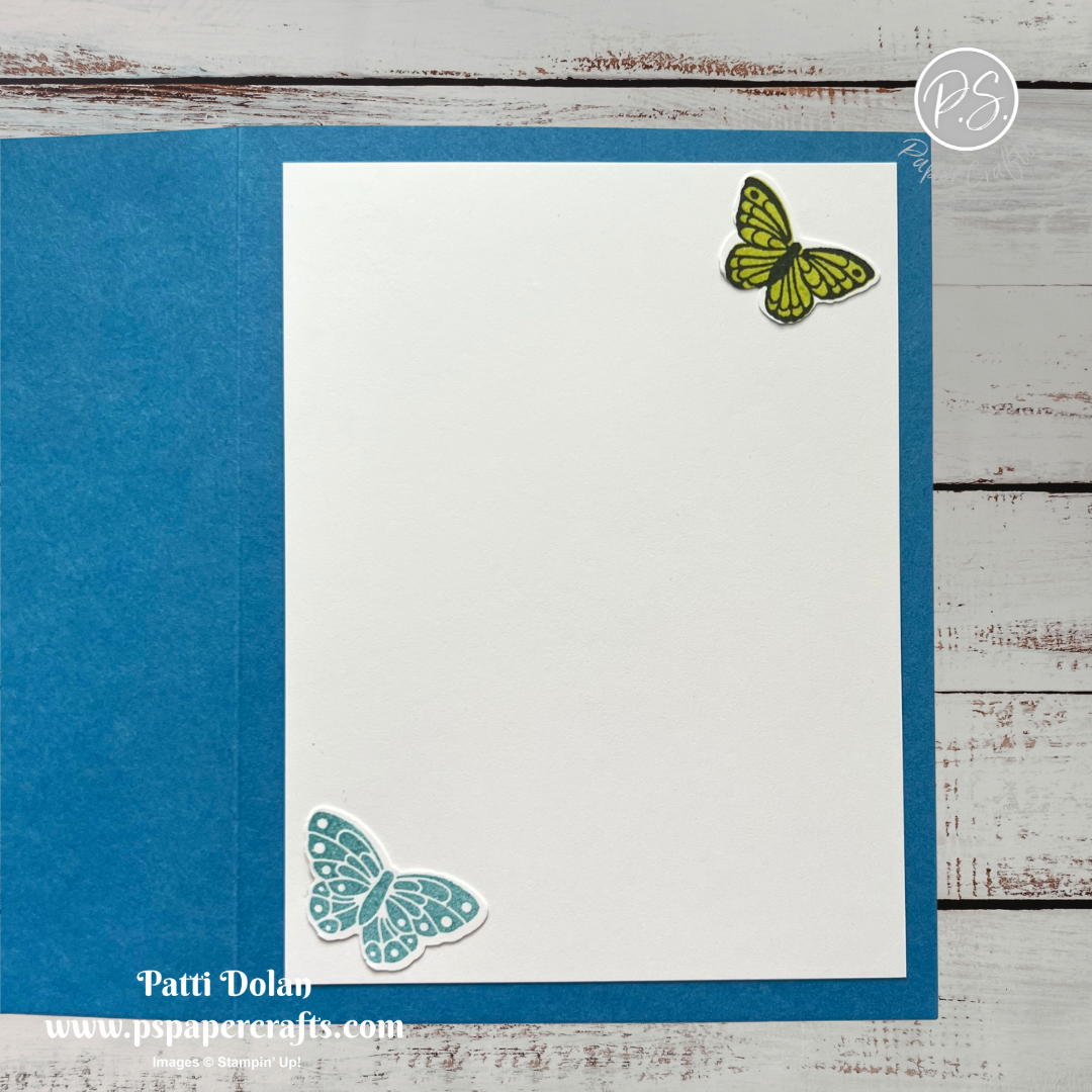 On the inside layer (4 x 5-1/4), adhere 2 butterflies.