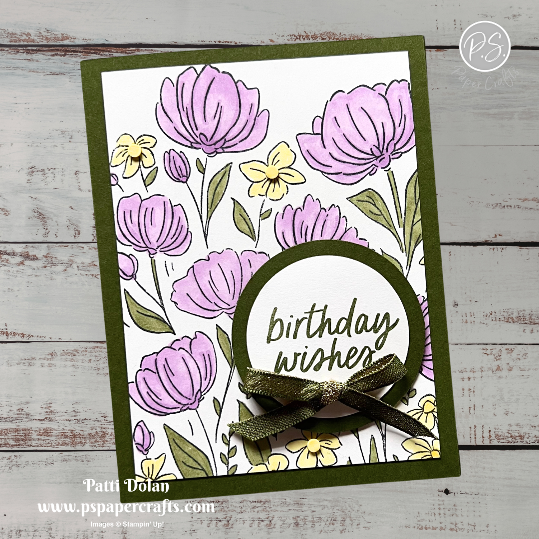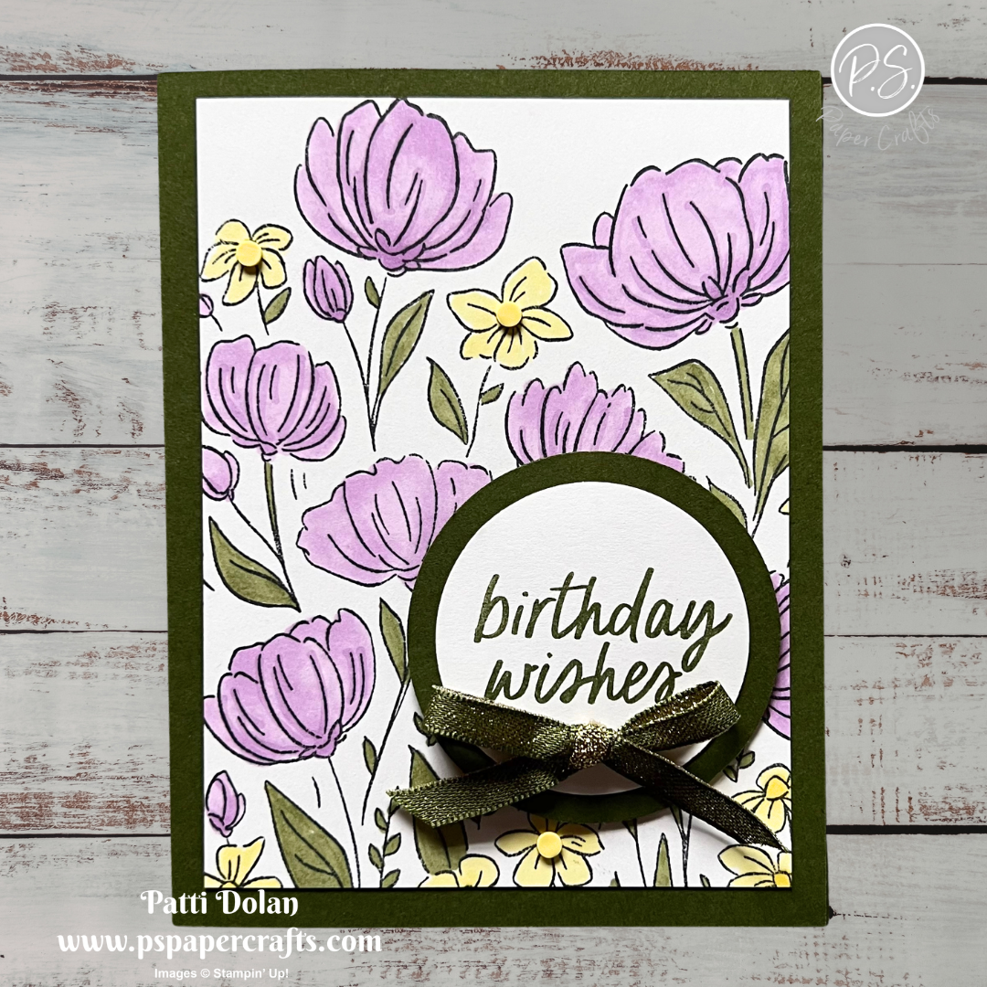 The Flower Fair Stamp Set features one stunning large floral image that makes a beautiful statement on any card. I colored it with Stampin’ Blends — quick, easy, and so much fun. It’s one of the brand-new Online Exclusives, available beginning March 3, 2026.