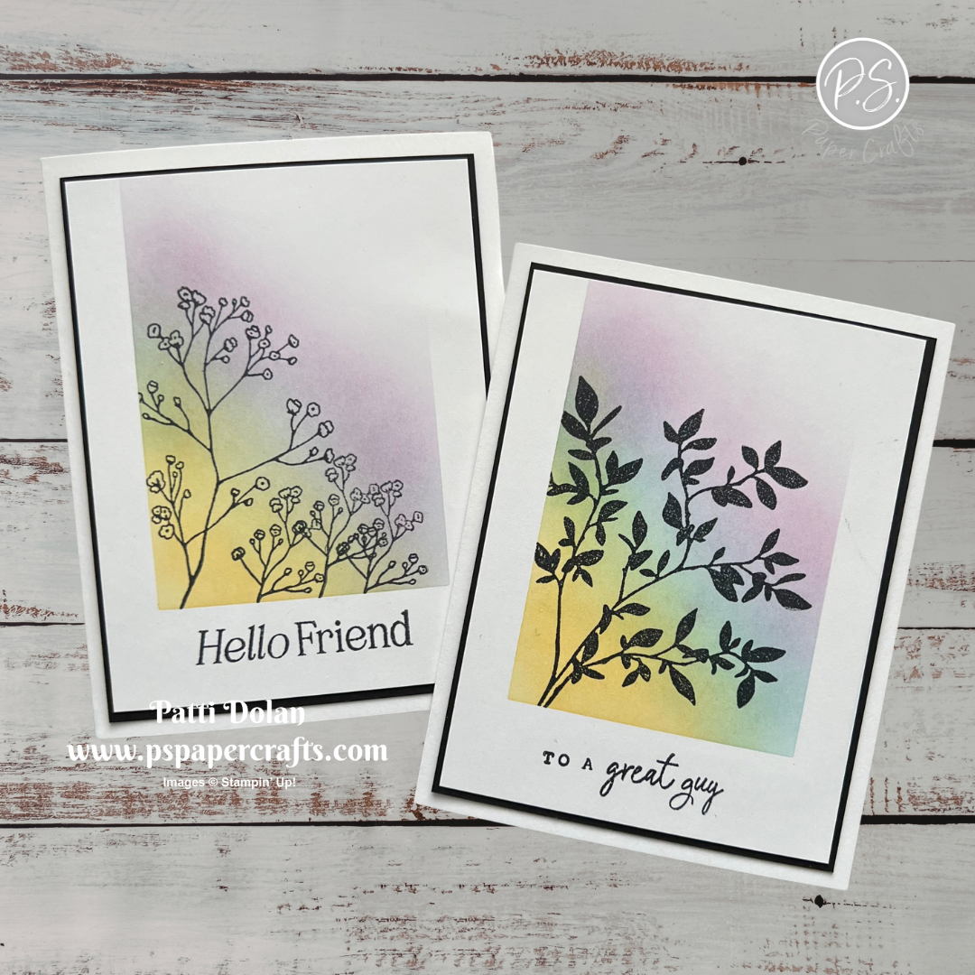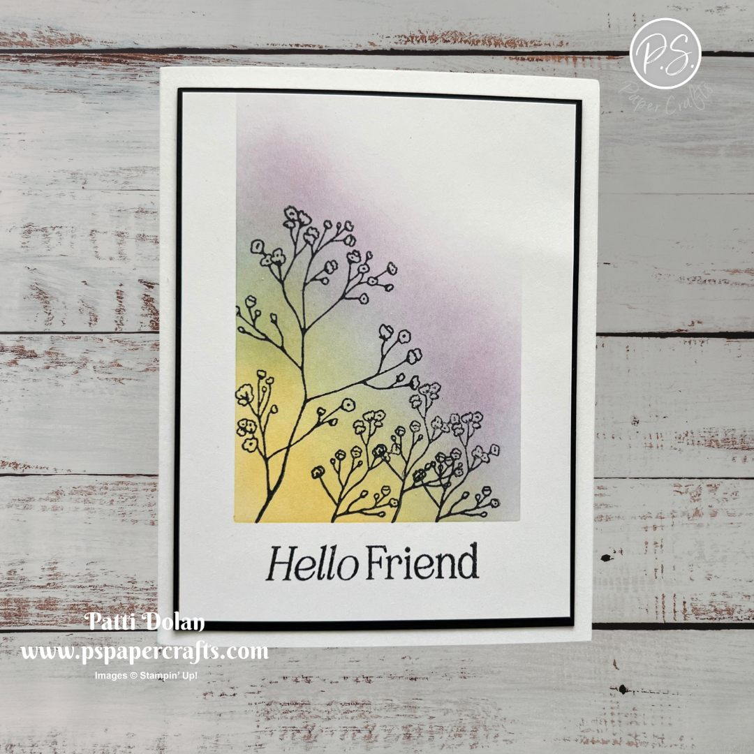 I used the new Nature’s Symphony Stamp Set to create this beautiful card. The colors that I blended are Daffodil Delight, Azure Afternoon and Fresh Freesia.