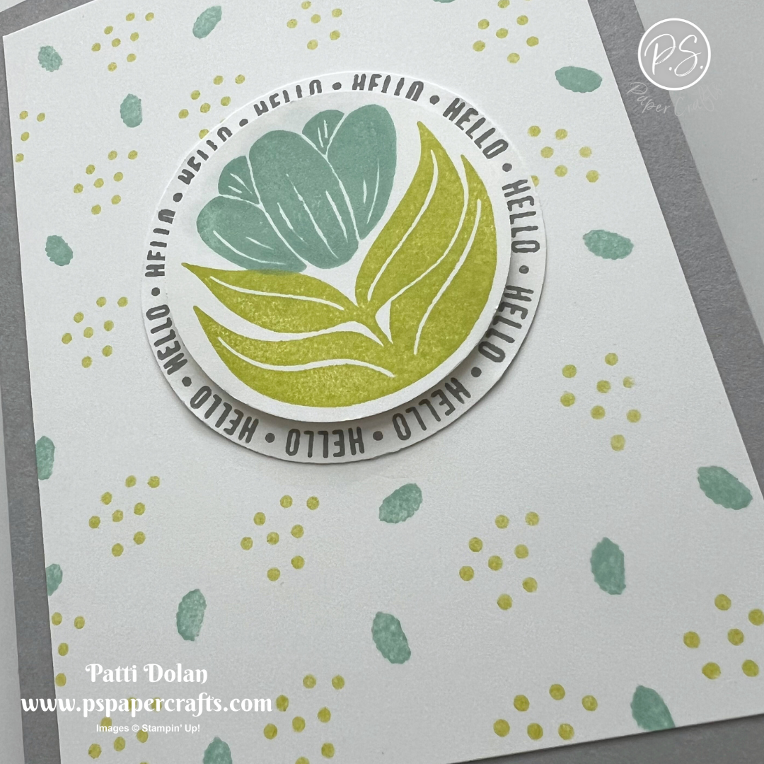 I used the new Round of Hellos Stamp Set to make this fun card along with this week’s Color Combo. It works well with the 2” and 2-3/8” Circle Punches.