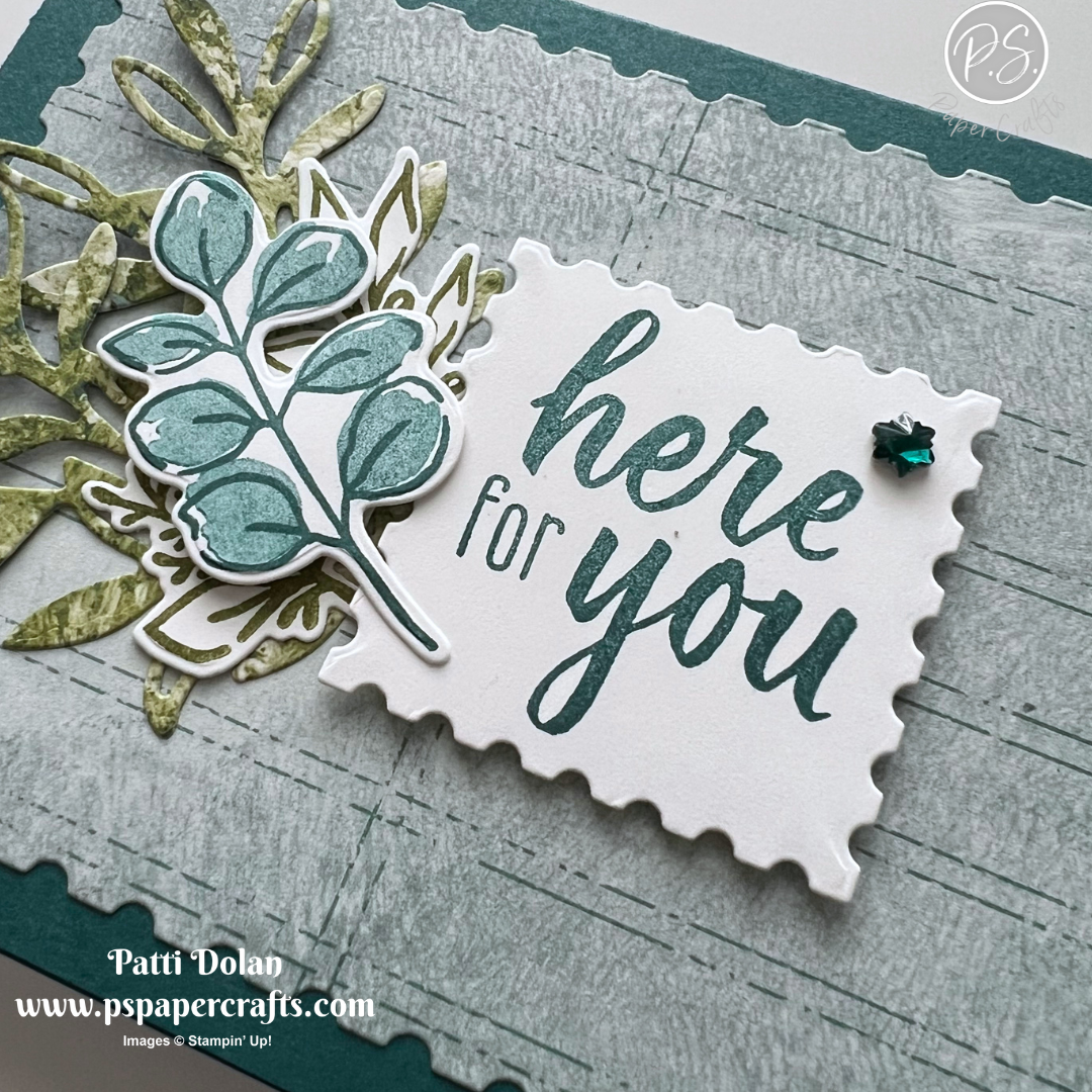 Nature Walk Designer Series Paper - Die cut the background layer using the largest Perennial Postage Dies. Adhere to the card base.