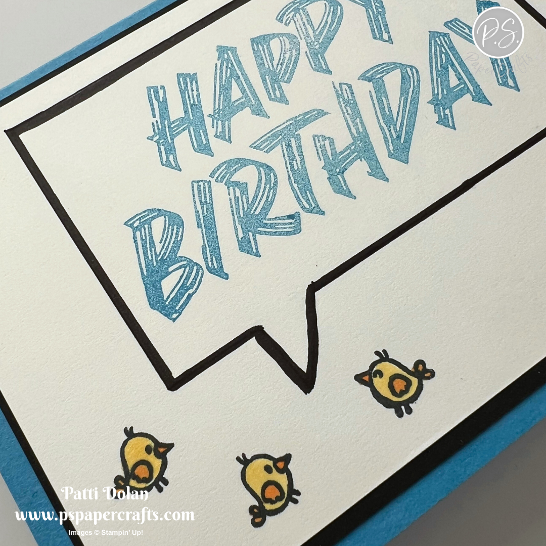 Stamp the large birthday sentiment in Azure Afternoon Ink on the white layer.