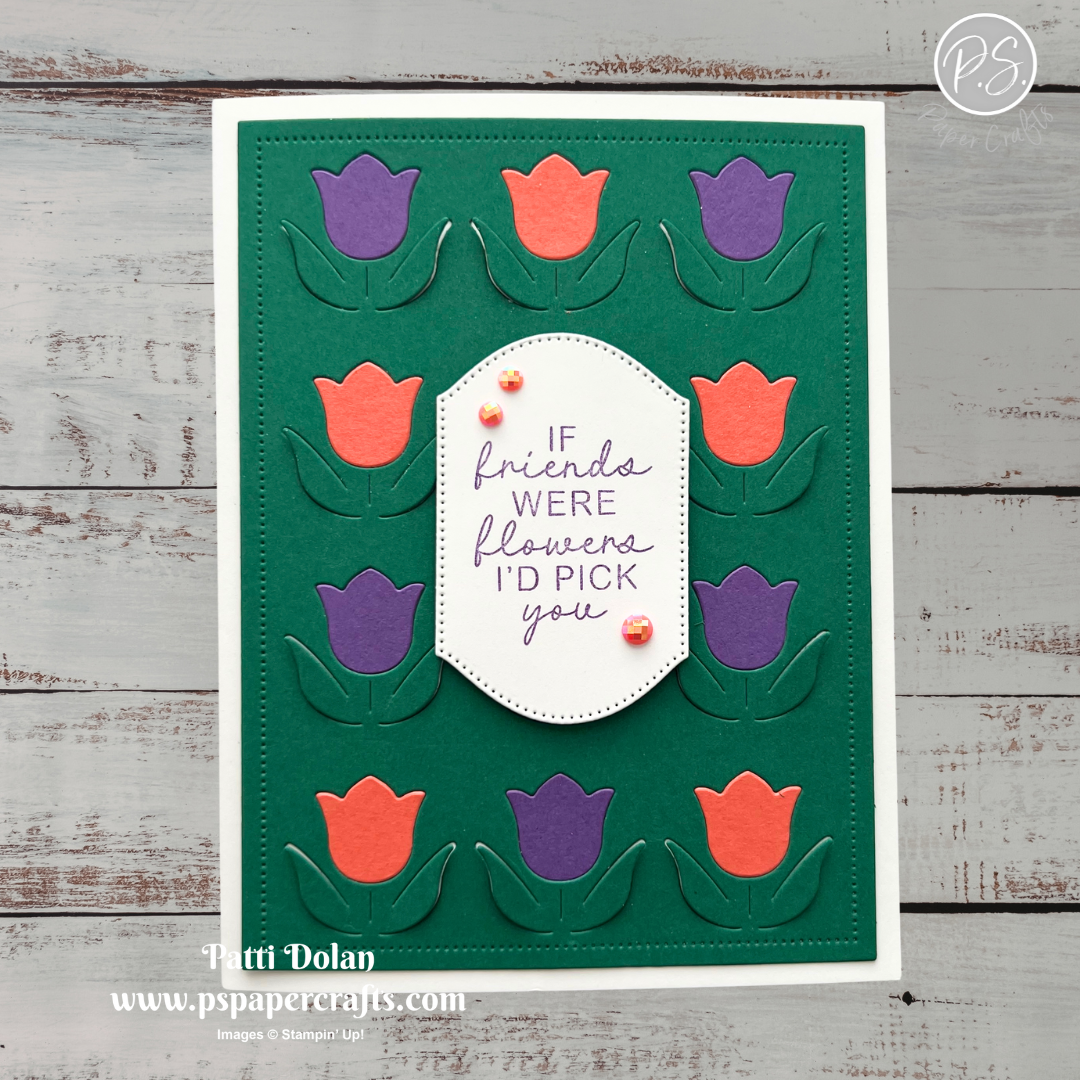 I decided to use the Sunshine & Tulips Bundle for this week’s Color Combo. It has one large die to cut the flowers out and cuts around part of the leaves so they can pop up a little bit.