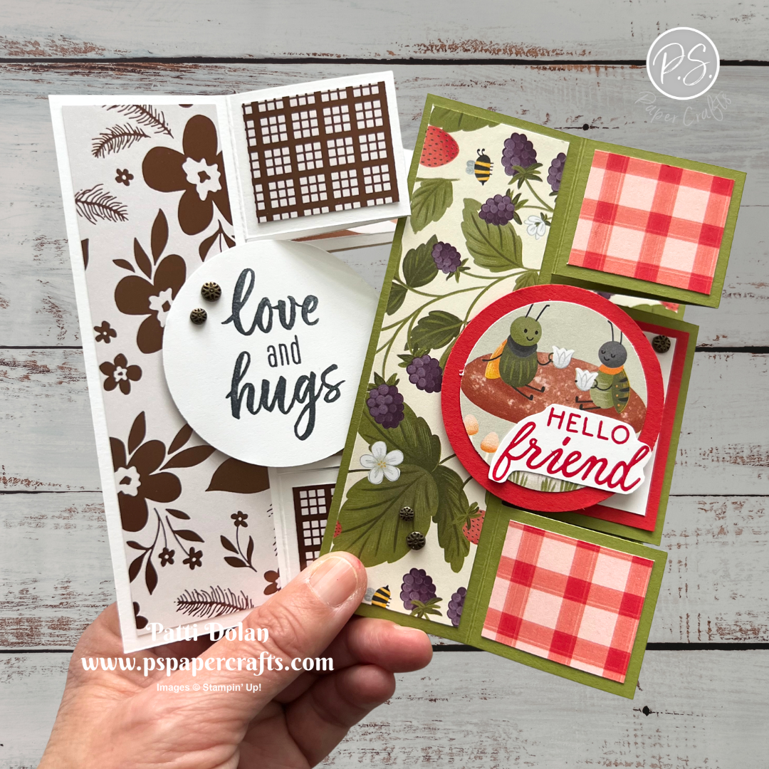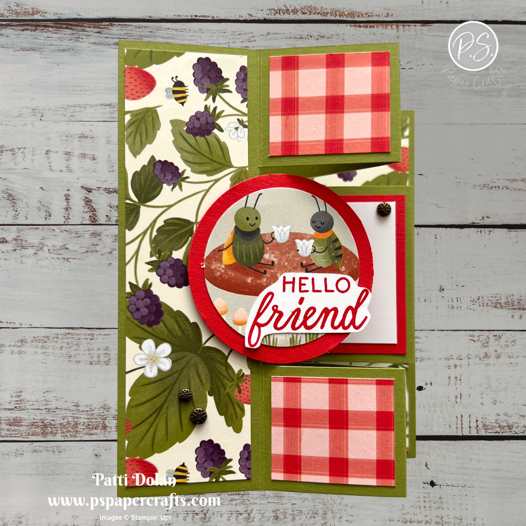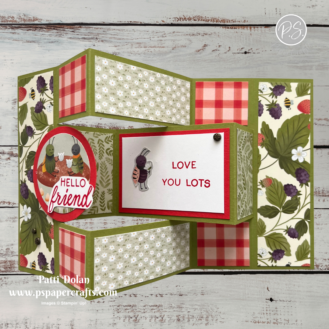 I looked through my paper stash to find patterns that would work for this design, you need 4 different patterns. I found great patterns in the Cute As A Bug Designer Series Pack and used the Sweet Bugs Stamp Set to go with it.