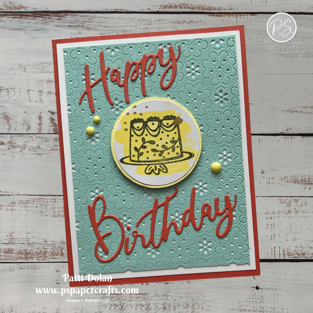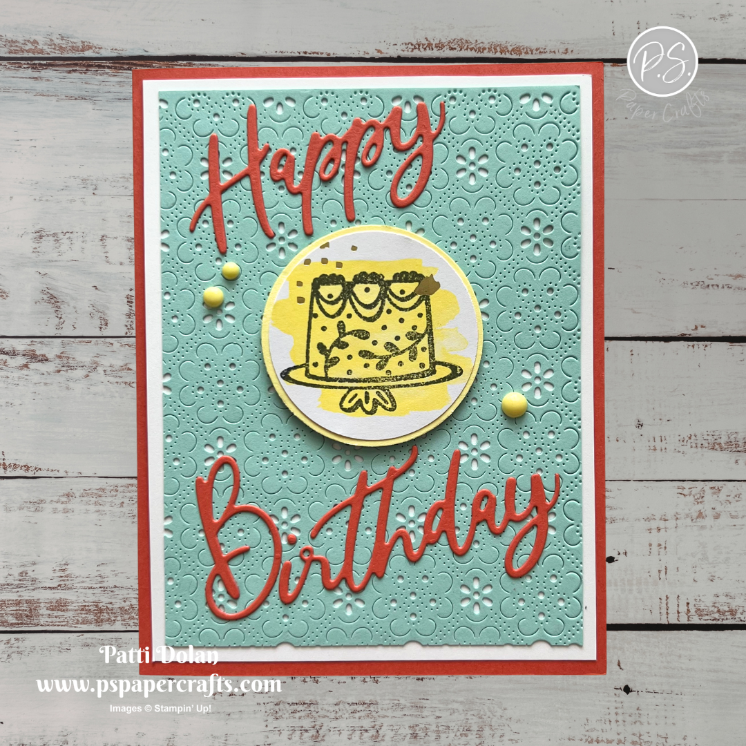 Here’s a fun birthday card I created using the new Words & Wishes Bundle from the upcoming catalog. The stamp set and dies are full of playful, celebratory sentiments—perfect for so many occasions! I used the Eyelet Blooms Die to create that pretty background layer. And even better—it’s this month’s Product of the Month, available for just $5 with a $75 purchase!
