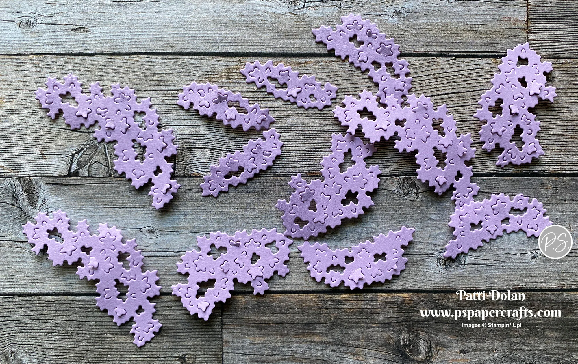Very Vanilla Layer - 4 4 1/4 x 1 3/4, stamp floral image with Early Espresso Ink and adhere to embossed layer.